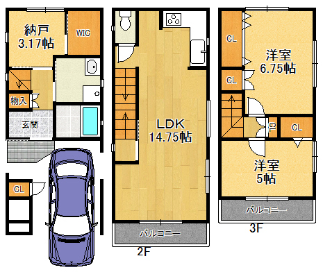 築浅・ガレージ付き・3階建の戸建物件です